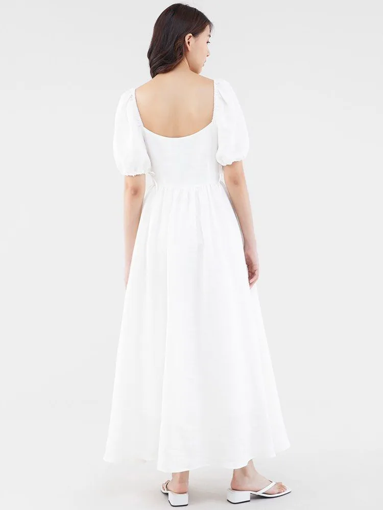 Podrobnosti o bavlněných lněných Maxi šatech s krátkým rukávem