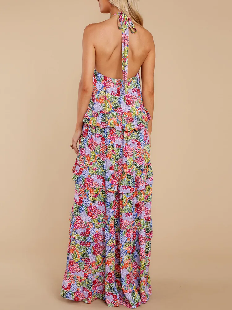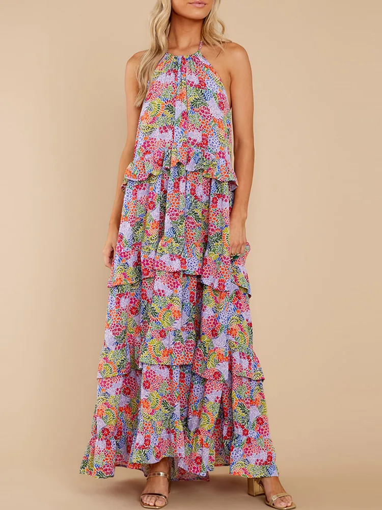 Hot Tags: Ženy elegantní květinové tiskové bavlněné maxi šaty